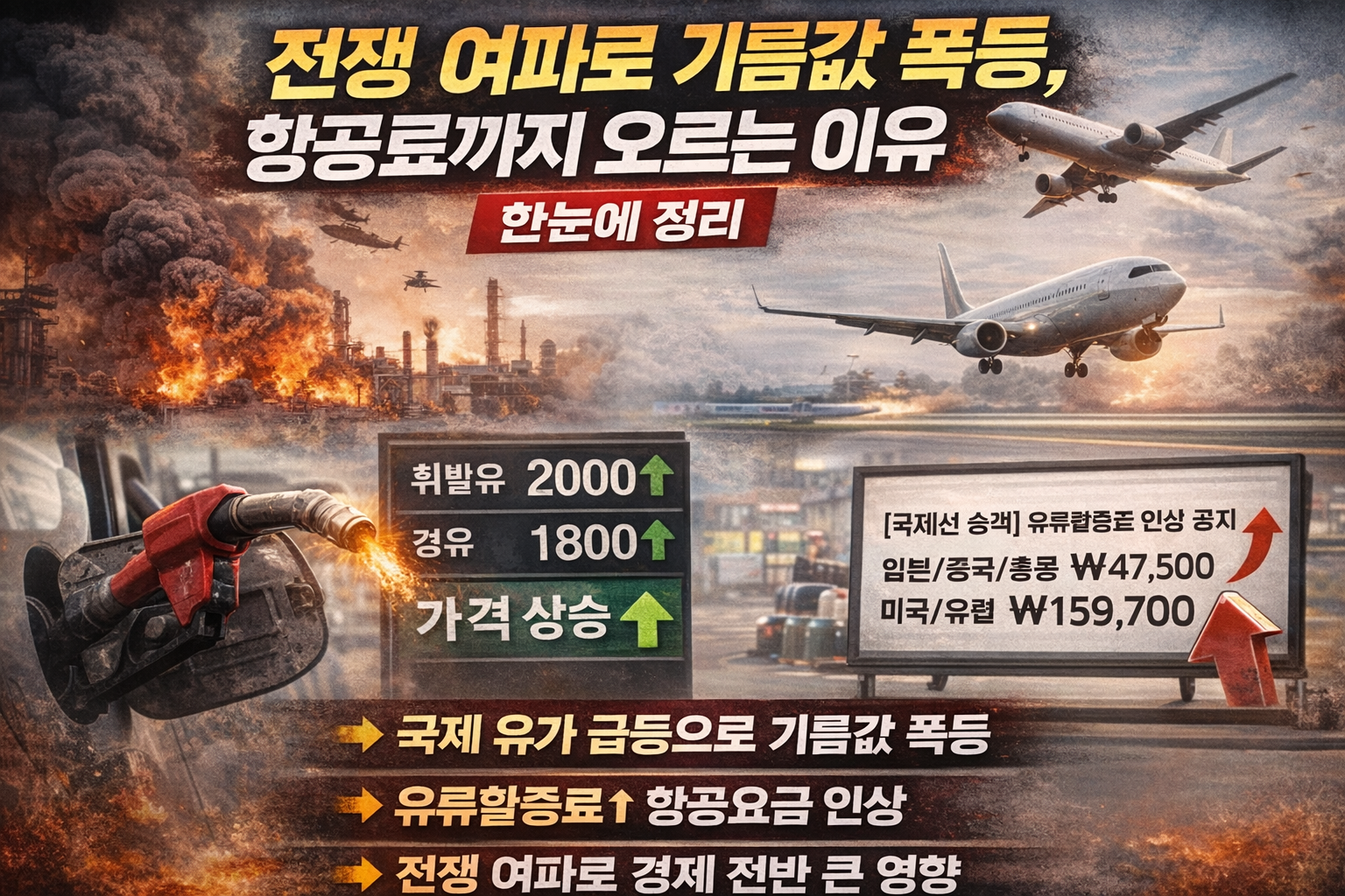최근 국제 정세가 불안정해지면서 전쟁과 관련된 이슈가 전 세계적으로 큰 영향을 미치고 있습니다. 특히 이러한 상황은 단순한 정치적 문제를 넘어 우리 일상에도 직접적인 영향을 주고 있습니다. 그 중에서도 가장 크게 체감되는 부분이 바로 기름값 상승과 항공요금 인상입니다. 많은 사람들이 “왜 갑자기 기름값이 이렇게 오르는지”, “비행기 값까지 비싸지는 이유는 무엇인지” 궁금해하고 있는 상황입니다.